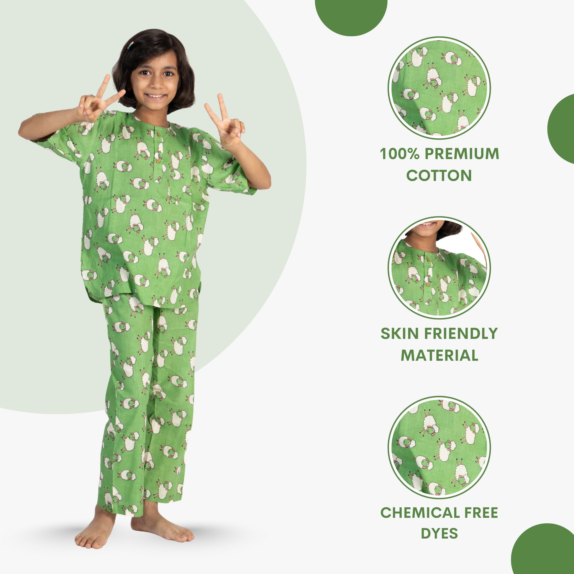 Delicately fashioned from soft and breathable cotton fabric, this night suit promises a tender hug for your little one as they journey into dreamland. The lightweight fabric ensures unhindered movement, providing a night of undisturbed sleep. Impeccably stitched for durability during the adventures that await, the material is gentle on delicate skin