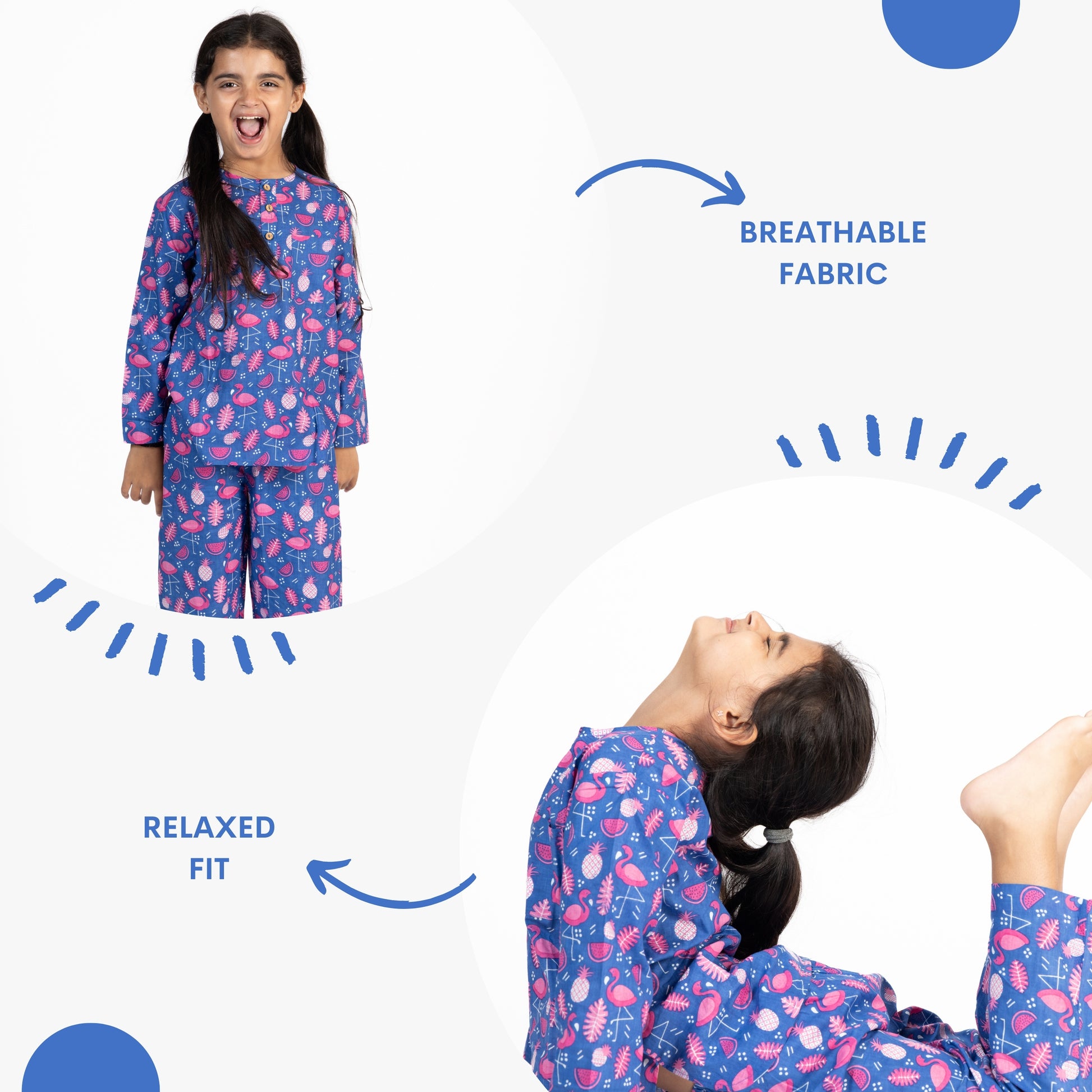Delicately fashioned from soft and breathable cotton fabric, this night suit promises a tender hug for your little one as they journey into dreamland. The lightweight fabric ensures unhindered movement, providing a night of undisturbed sleep. Impeccably stitched for durability during the adventures that await, the material is gentle on delicate skin