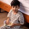Delicately fashioned from soft and breathable cotton fabric, this night suit promises a tender hug for your little one as they journey into dreamland. The lightweight fabric ensures unhindered movement, providing a night of undisturbed sleep. Impeccably stitched for durability during the adventures that await, the material is gentle on delicate skin