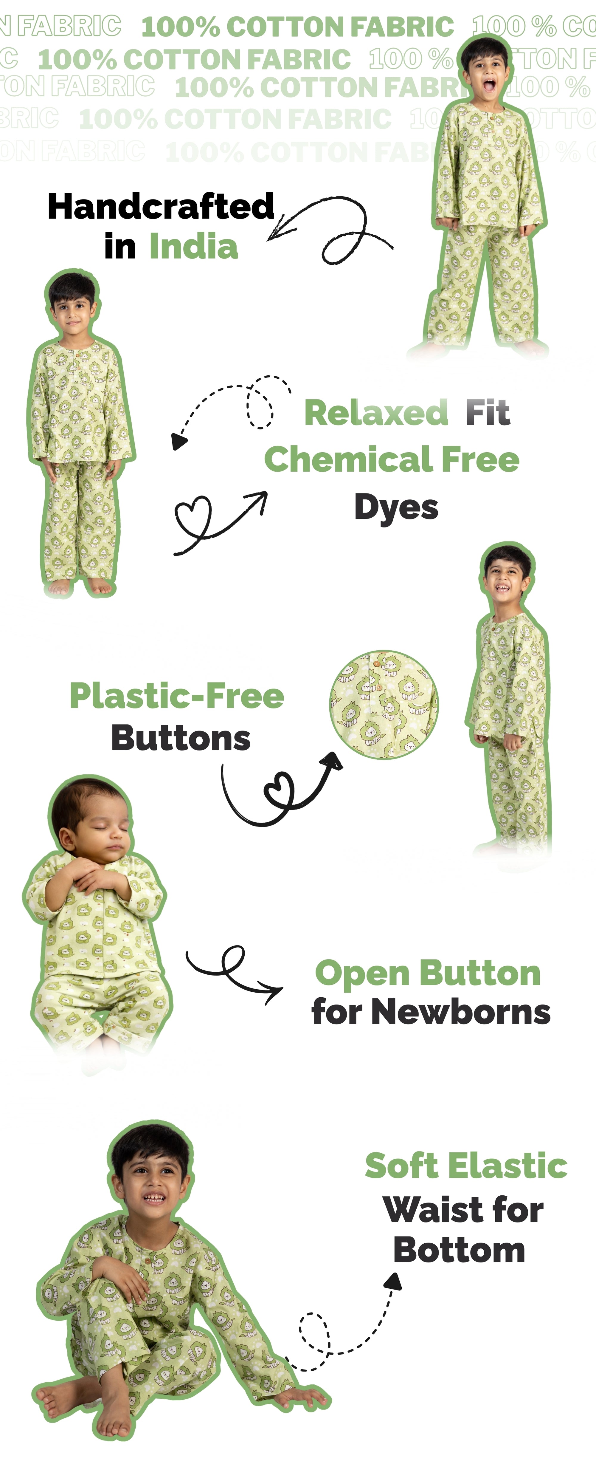 100% Premium Cotton • Made with Love & Care • Playful Prints for Little Ones
